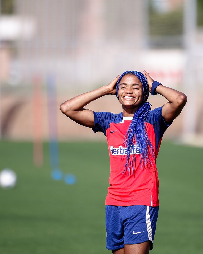 Rasheedat Ajibade: Jesus is King and Super Falcons star goes for blue braids ahead of new season with Atletico Madrid