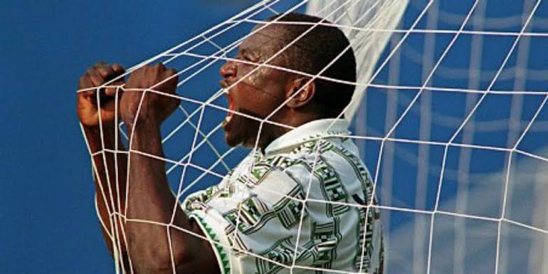 He is forever marked in football history for his famous celebration of scoring Nigeria's first goal—clutching the net with both arms and crying with happiness which was represented in the Doodle by Google.
