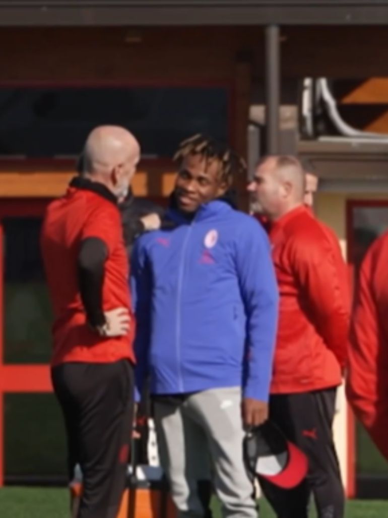Samuel Chukuweze with his manager Stefano Pioli at AC Milan training.