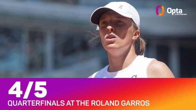 World No.1 female tennis player Iga Swiatek is on course to defend her Roland Garros title after reaching the quarterfinals of the Grand Slam tournament.