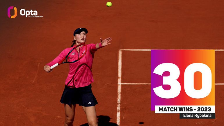 Elena Rybakina claimed her 30th match win of 2023 after defeating Linda Noskova in straight sets - excluding the BJK Cup. The most Rybakina has achieved in an entire calendar year is 37, in 2022.