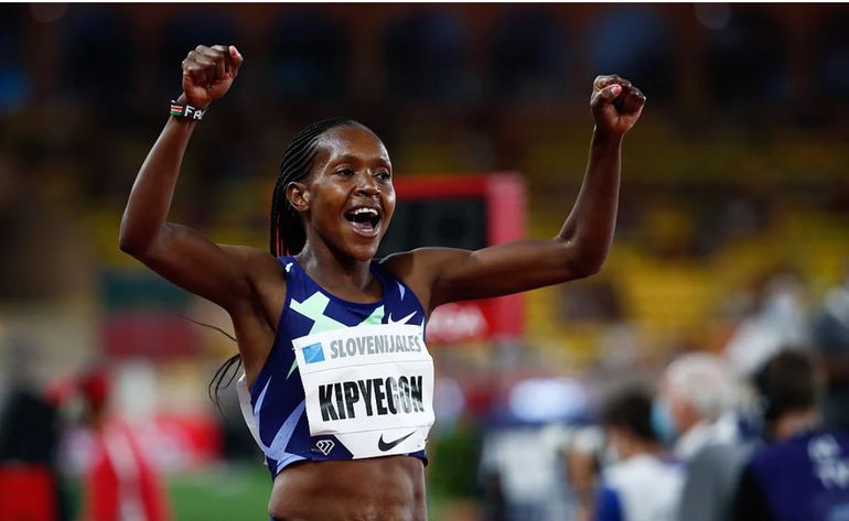 Kipyegon broke the 1500 meters record in Florence a week ago, clocking a sensational 3:49.11 and then broke the 5000 meters record in Paris seven days later, clocking 14:04.20, smashing Ethiopia's Letesenbet Gidey's previous record of 14:06.65.