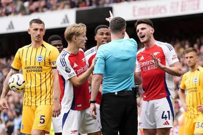 The Gunners were held at home by Brighton as Declan Rice received a controversial red card