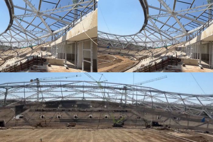 Latest images from the Samia Suluhu Stadium show the facility’s roof is now being erected with work still ongoing on the terraces while the ground is being levelled on the pitch area.