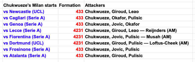 There were encouraging signs in Milan’s defeat by Dortmund on matchday five, but Chukwueze may have to make way for Leao on Wednesday after five consecutive starts.