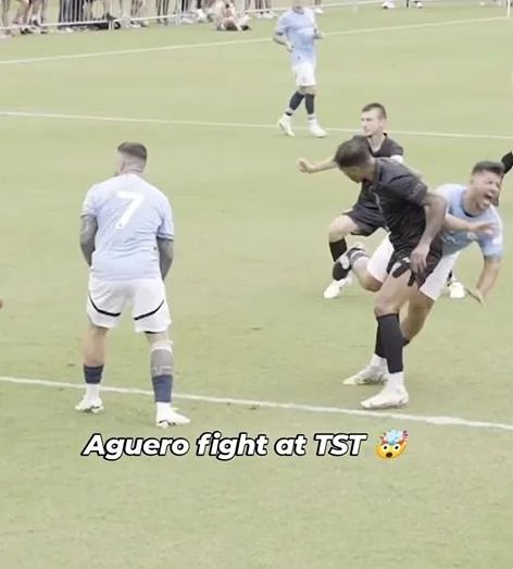 It got HEATED after this tackle against Sergio Aguero at @TST7v7 😳 pic.twitter.com/TwPHjmLDPy