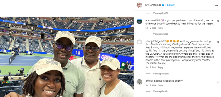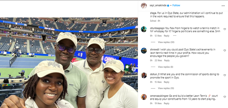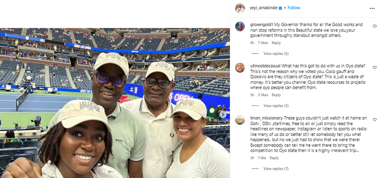 Reactions by Nigerians to Seyi Makinde traveling to watch the US Open