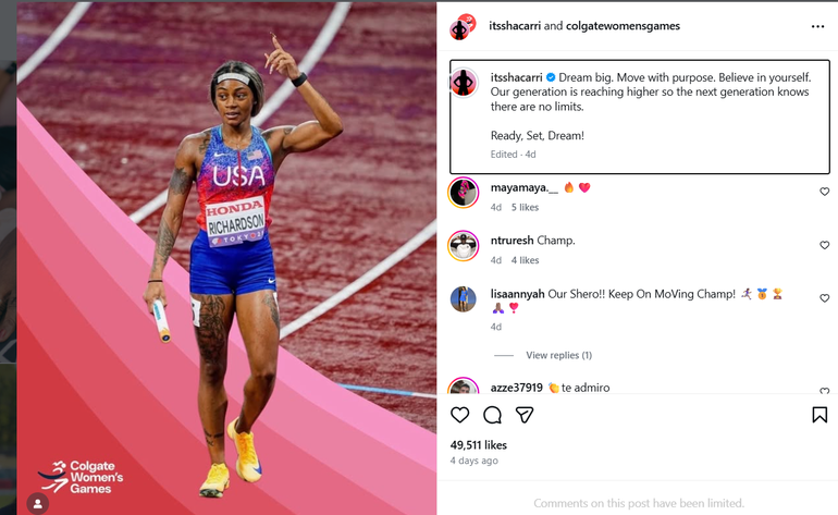 “Dream big. Move with purpose. Believe in yourself. Our generation is reaching higher so the next generation knows there are no limits,” Richardson posted on Instagram. “Ready, set, dream,” she added.