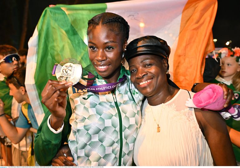 Highly rated sprinter Rhasidat Adeleke finished the European Athletics Championships as the second most decorated athlete, securing three medals and setting Irish National Records., which she credits her mother for the success.