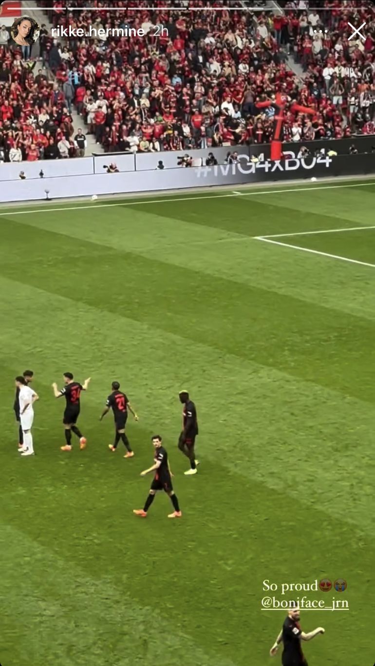 Hermine, who was present at the Bay Arena, for the title celebrations, posted a clip of Boniface celebrating after the scoring opener, on her Instagram story.