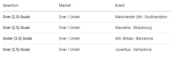 Our tickets today include Monaco, Barcelona, Manchester United and Juventus respectively.