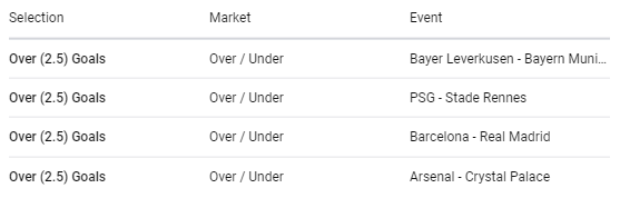 Our tickets today include Barcelona, Arsenal, Bayern Munich and PSG respectively.