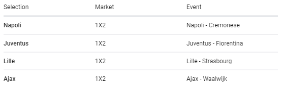 Our tickets include Lille, Napoli, Juventus and Ajax respectively.
