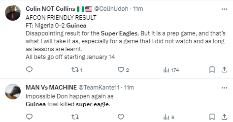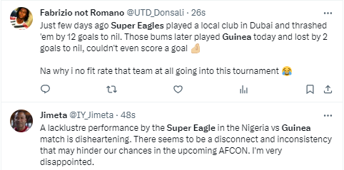 Now, after the loss to Guinea days before the start of the AFCON, Nigerians are lukewarm about the Super Eagles' chances of a fourth continental title.