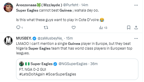 The Super Eagles spent the rest of the goal chasing a consolation goal but Guinea held on for a comfortable win.