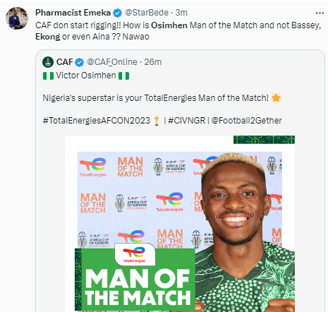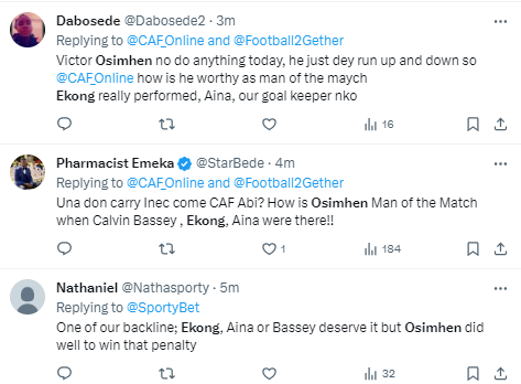 After the game, Osimhen was selected as the Man of the Match by the Confederation of Africa Football (CAF).
