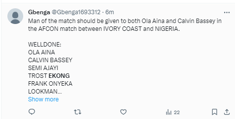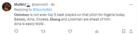 Nigerian football fans praised certain players for their efforts in the game against the host nation.