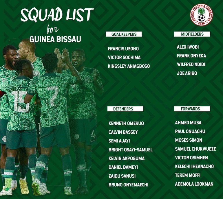 Super Eagles of Nigeria squad for Guinea Bissau matches