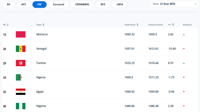 But despite the latest rankings, the Super Eagles of Nigeria stay behind only the Atlas Lions of Morocco, the Teranga Lions of Senegal, the Carthage Eagles of Tunisia, the Desert Foxes of Algeria and Pharaohs of Egypt.