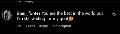 In a gesture of solidarity, Ines replied to a photo of Onyemaechi playing for Boavista F.C. on Instagram and added a caption, “You are the best in the world but I'm still waiting for my goal.”