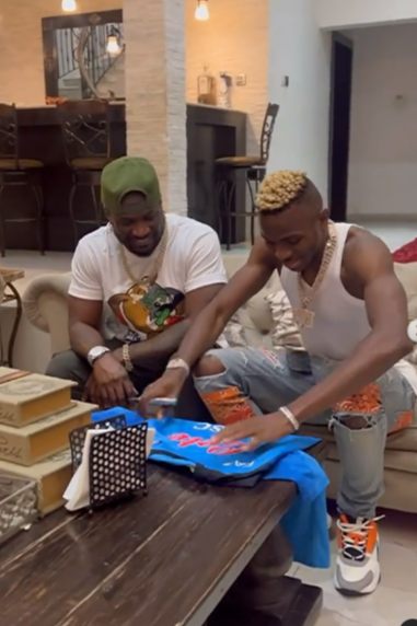 Via a post on Okoye’s official Instagram page on Wednesday, Osimhen who is one of the most followed Nigerian footballers on Instagram was spotted with the music star and his son in their mansion in Lagos.