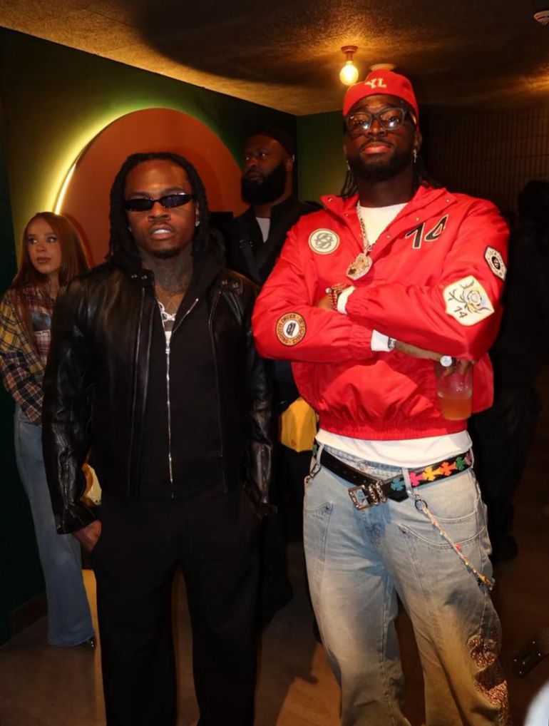 The 25-year-old Wolverhampton Wanderers forward posed for photos with Gunna (real name Sergio Kitchens) in sleek streetwear.