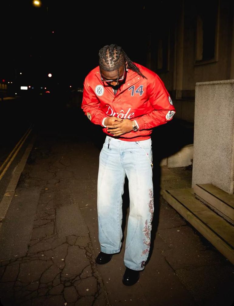 Arokodare, notorious for his fashion-forward aesthetic, posed in a black leather jacket, dreads and shades, while the rapper rocked a bright red jacket, cap and chains.