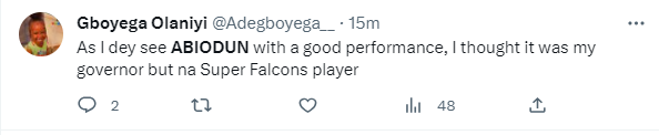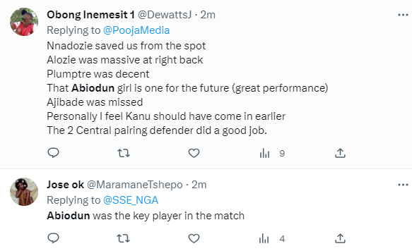 Although she won't play in their upcoming match against Australia, Nigerians praised the effort of the 19-year-old.