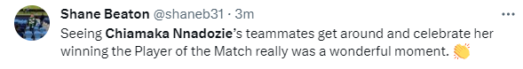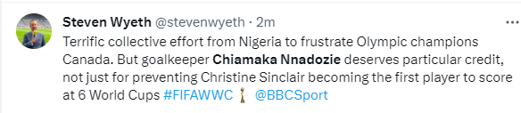 After the game, there was a massive reaction to Nnadozie's heroics in the draw against Canada.