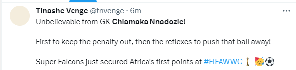 Nigerians react to Chiamaka Nnadozie's Super Falcons penalty save