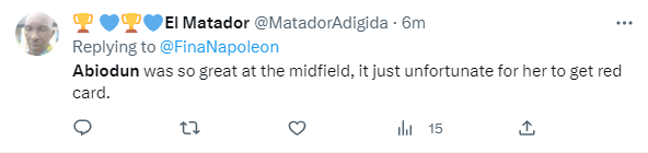 The yellow card issued to Abiodun was changed to a red one in the 97th minute following a VAR review.