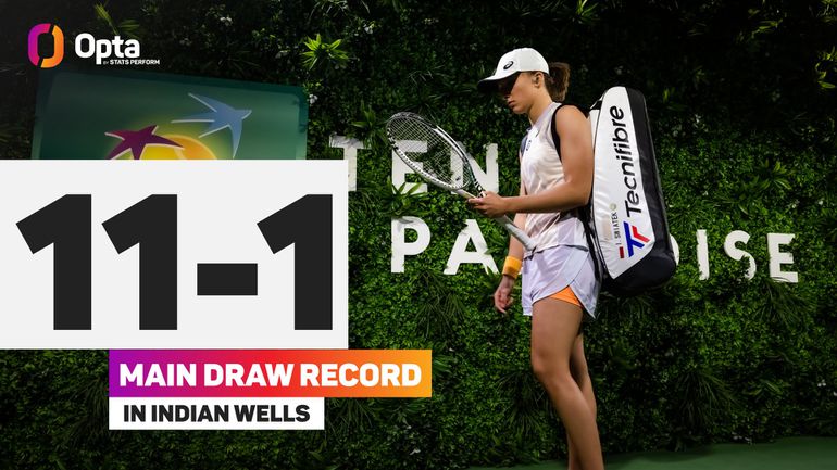 Swiatek is the sixth player to win 11+ of her first 12 main draw matches in Indian Wells after Steffi Graf (12), Mary Joe Fernandez, Martina Hingis, Serena Williams, and Naomi Osaka (11 each).
