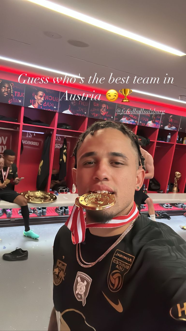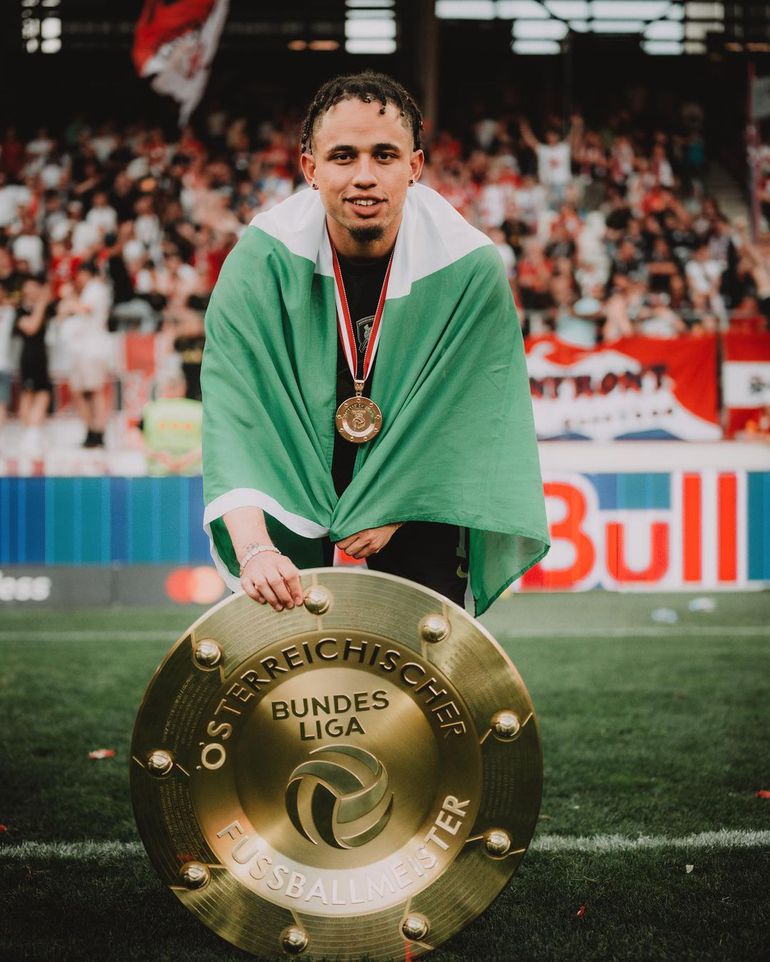 Noah Okafor celebrates Red Bull Salzburg title with Nigerian flag