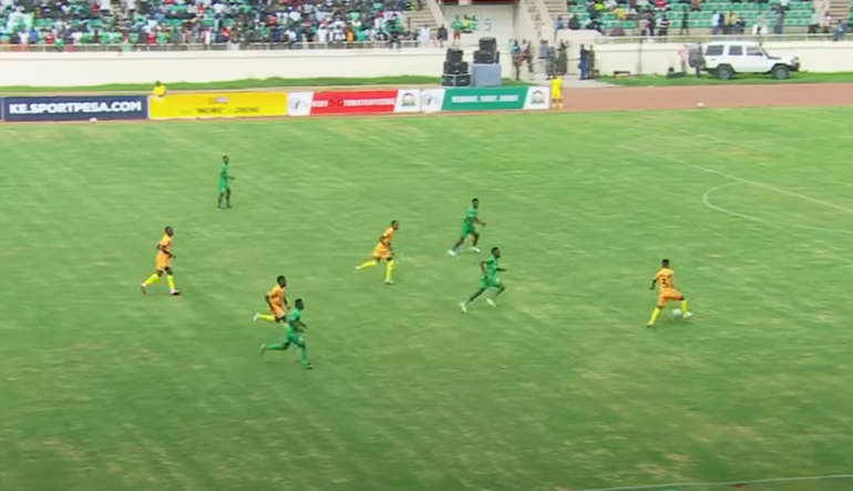 Kayci Odhiambo’s ball playing capabilities proved essential, as he gave one well-executed long ball over the top towards Maxwell Otieno, who was then fouled by Sylvester Owino.