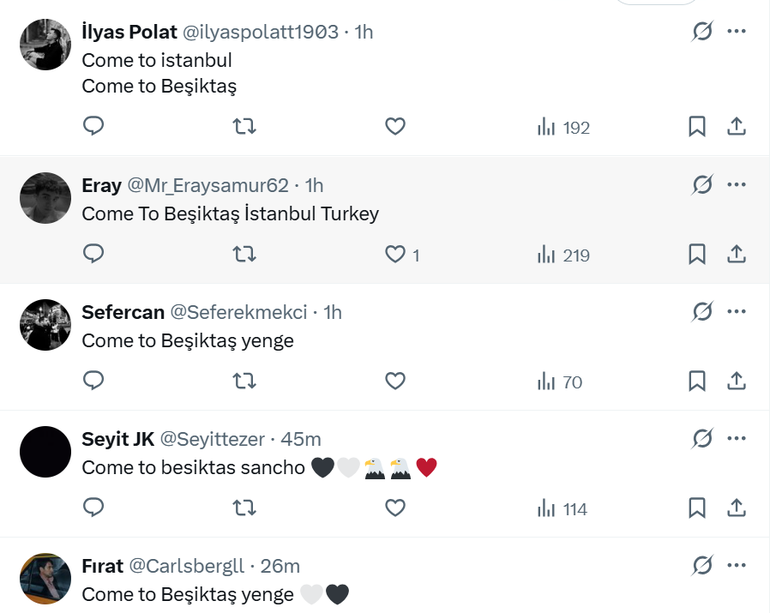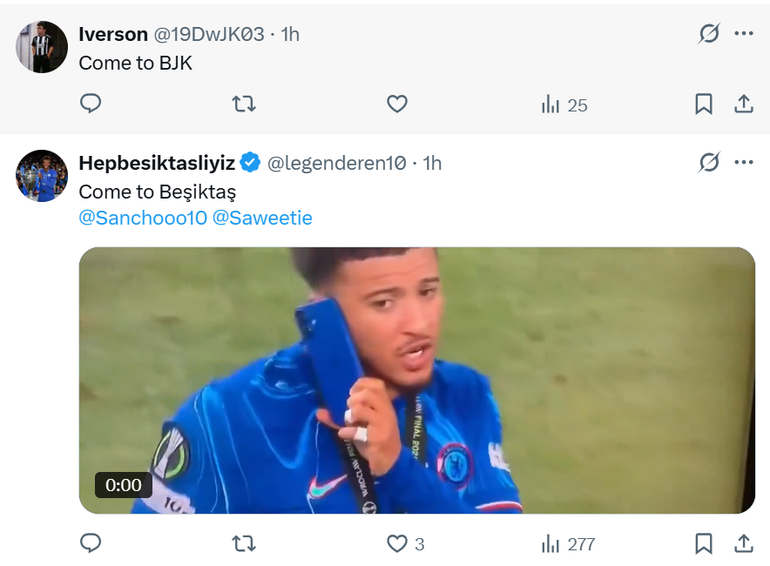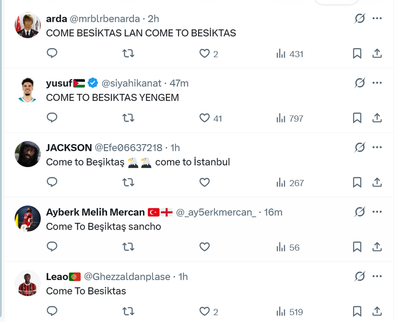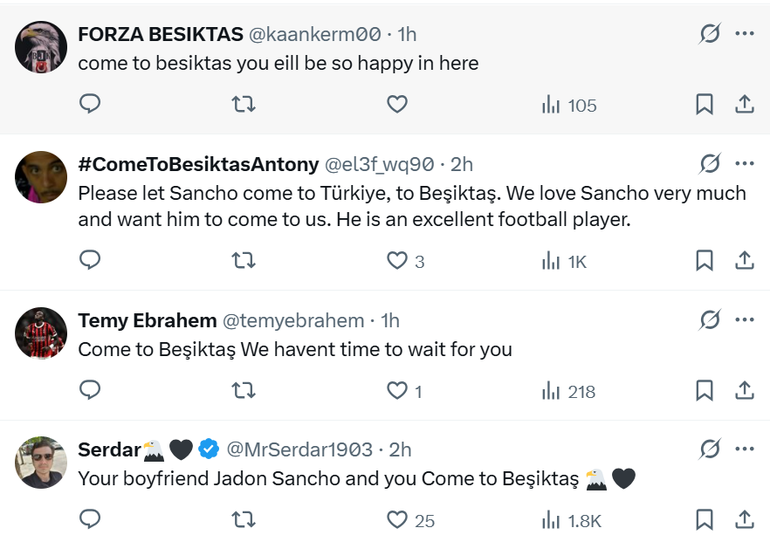 Other messages were equally direct, with one fan begging, "Please let Sancho come to Türkiye, to Beşiktaş. We love Sancho very much and want him to come to us. He is an excellent football player."