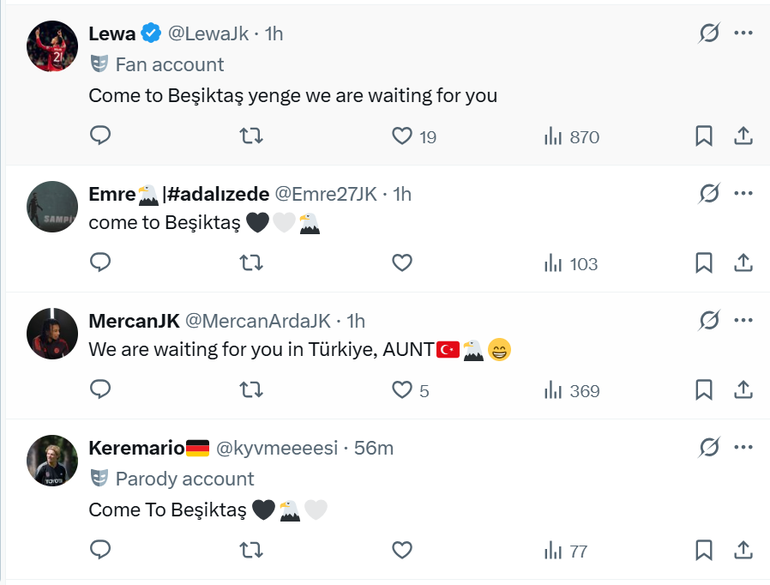 The comments section and quote tweets were immediately flooded with messages from Beşiktaş fans, all urging the 32-year-old Grammy nominee to use her influence to secure a transfer for her new man.