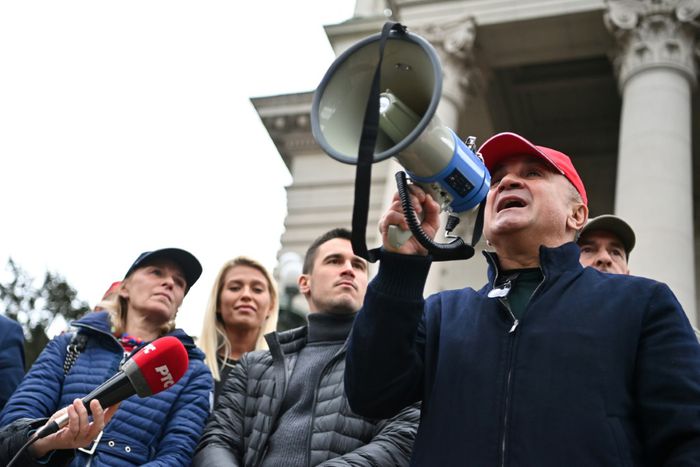 In the Serbian capital Belgrade, Djokovic's father Srdjan led a demonstration alongside a few hundred others in front of the country's parliament.