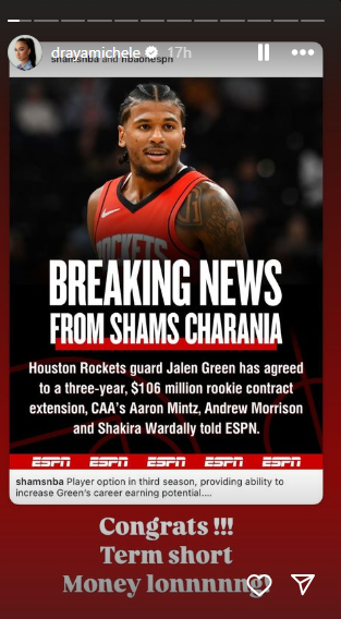 Taking to her Instagram stories, she wrote: "Congrats!!! Term short. Money lonnnnng!,” throwing in a hint of humour while showing her support for the NBA star’s major payday.