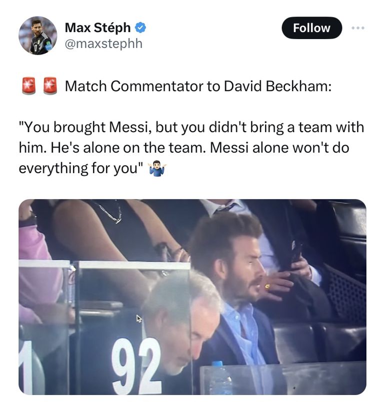 One user on X posted a photo from the game after a commentator seemed to troll David Beckham, Inter Miami’s President and minority co-owner, during the defeat.