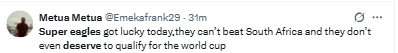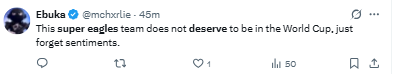Following the result, Nigerians took to social media to give their thoughts on the performance of the team.