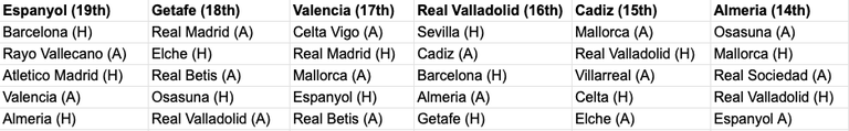 Three of the teams they face are in the bottom half of the standings, with the clash with Espanyol in the penultimate round of the campaign an undoubted six-pointer.