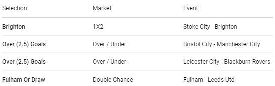 Our tickets today include Brighton, Leicester City, Fulham and Manchester City respectively.