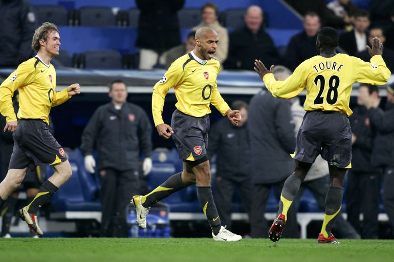 Thierry Henry celebrating a goal for Arsenal against Real Madrid on February 2, 2024 (Credit: Imago)