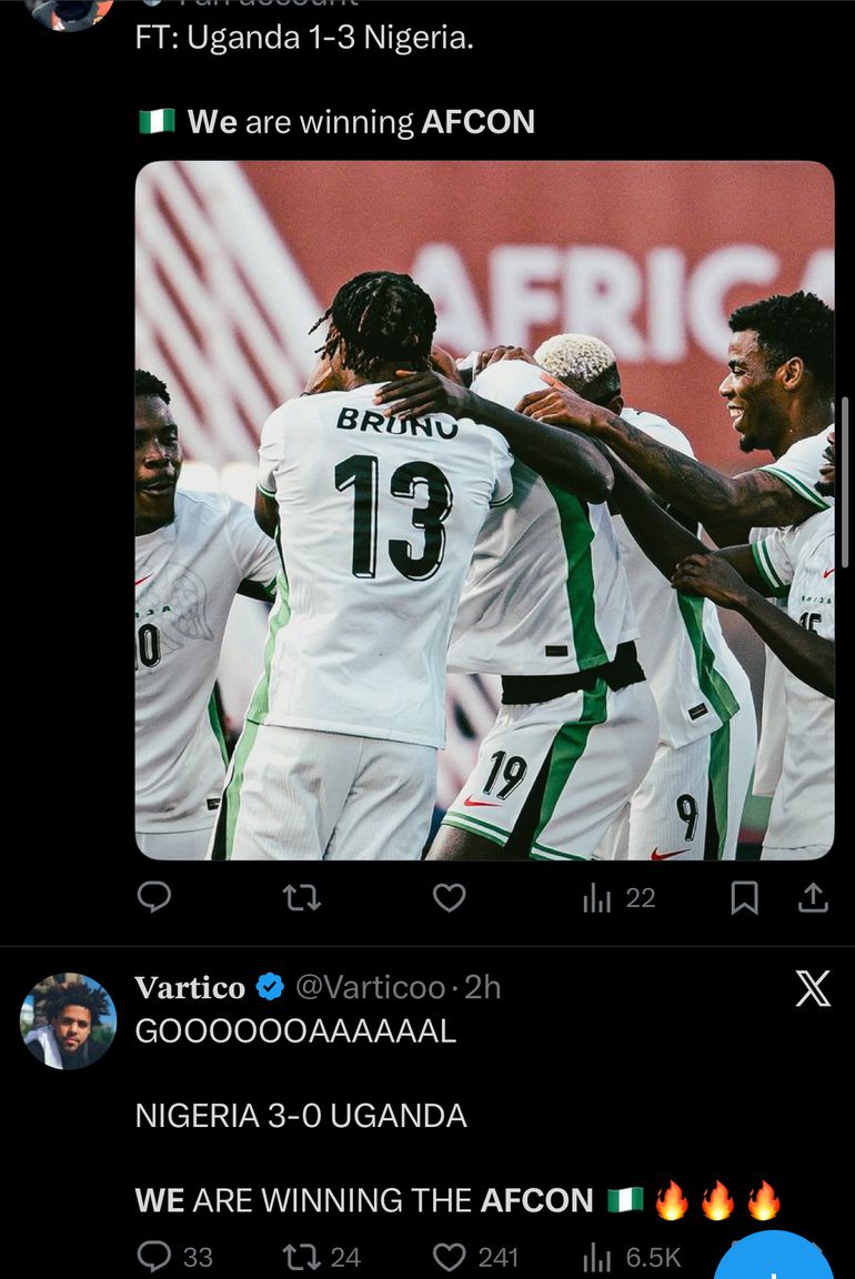 Nigerians on social media erupted with confidence and celebration after the Super Eagles delivered a dominant performance against Uganda’s Cranes.