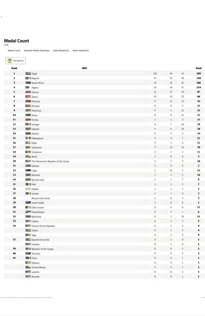 FULL LIST (RANKING) - AFRICAN GAMES 2023