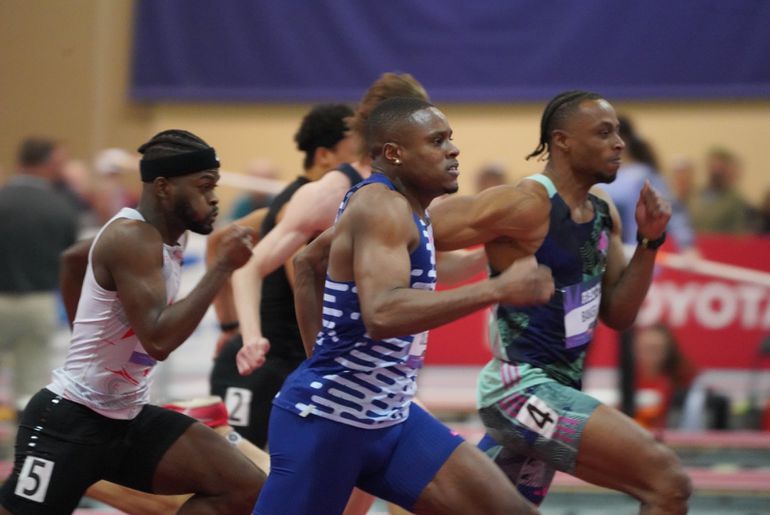 Both speedsters will represent the USA in the men's 60m event at the World Indoor Championships in Glasgow next month, where they'll continue their rivalry for the world title.