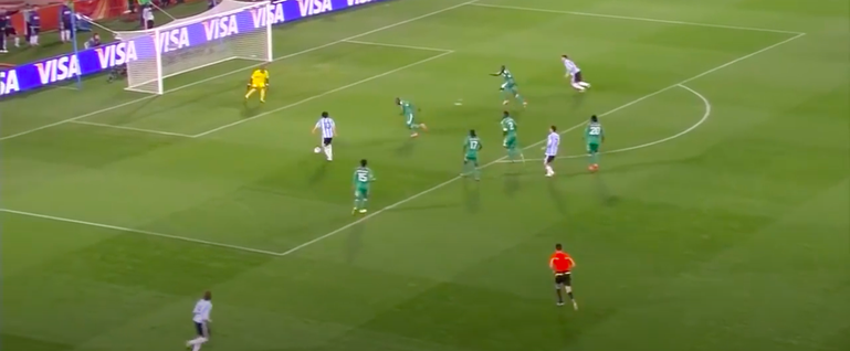Drawn to Di Maria, the panic-stricken Super Eagles missed Messi going unnoticed into the penalty area for a successful exchange of passes with his teammate.
