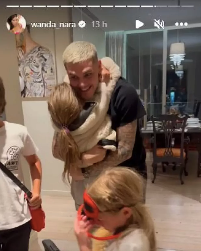In a video uploaded on Wanda’s Instagram story, Icardi is seen trying to hug everyone.