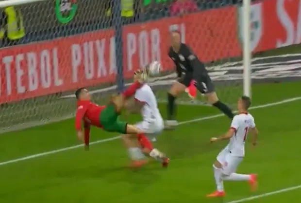 Vitinha delivered a looping ball into the box, where Ronaldo stood unmarked. Instead of taking a touch or striking it on the volley, he leapt into a familiar position, scissor-kicking the ball into the net and capping off a near-perfect night for Portugal.