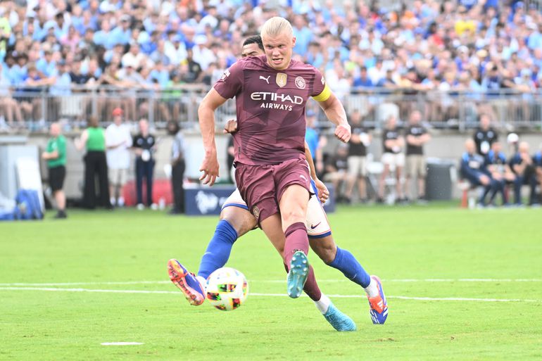 Man City's Erling Haaland scored a hat-trick against Chelsea (Credit: Imago)